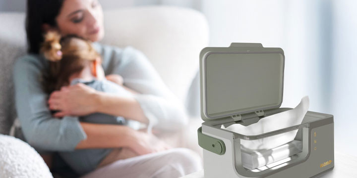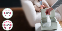 - Два рівні нагрівання: Пристрій пропонує два рівні нагрівання – 45 °C і 55 °C, завдяки чому ви можете підібрати температуру відповідно до потреб вашого малюка. Делікатно підігріті серветки забезпечують комфортний і приємний догляд, усуваючи відчуття холоду і дбаючи про чутливу шкіру дитини.