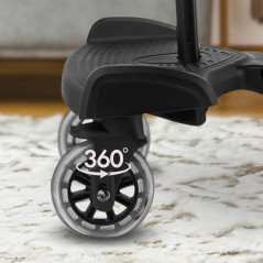 Доступно. Відправка 3-7 робочих днівПідніжка для старшої дитини з сидінням Moby-System BUGGY2GO - двоє маленьких дітей на прогулянці - це виклик, але з функціональним додатковим спальним місцем все стає простіше. Старша дитина може подорожувати сидячи або стоячи, поки малюк зручно лежить або сидить в колясці. Подовжувач підходить до будь-якої стандартної коляски на ринку. Це тому, що вона має універсальну систему кріплення, яка дозволяє встановлювати її як на вертикальні, так і на горизонтальні рами. М'яка підвіска гарантує плавну і комфортну їзду, а нековзна платформа підвищує її безпеку. Сидіння розраховане на дітей віком від 2 до приблизно 5 років. Колеса обертаються на 360 градусів для зручності керування. Зручне сидіння гарантує комфорт дитини під час поїздки.