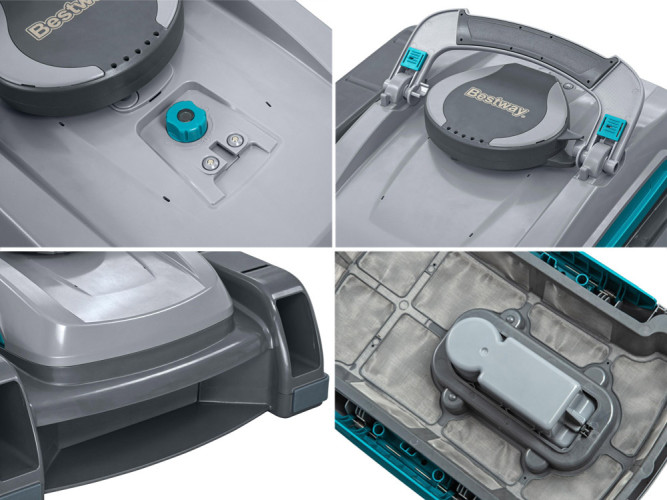 Удосконалені датчики активують пристрій при повному зануренні у воду та автоматично вимикають його при вийманні з басейну, захищаючи двигун від пошкоджень. Система коліс та система спрямованого струменя забезпечують плавну роботу, легке маневрування та легку зміну напрямку при зіткненні зі стінами або перешкодами.