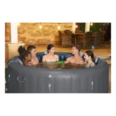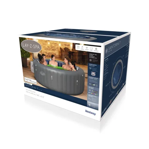 Джакузі Bestway Lay-Z-Spa Santorini SMART HydroJet PRO Jacuzzi 6001T - комфорт і розслаблення після важкого дня відтепер у вас під рукою завдяки надувному джакузі Santorini Smart HydroJet Pro з серії Lay-Z-Spa від відомого бренду Bestway. Цей ексклюзивний садовий спа-салон розрахований на 5-7 дорослих.