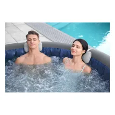 Надувний спа-салон Santorini Smart HydroJet Pro також пропонує унікальну атмосферу завдяки яскравому світлодіодному освітленню, яке оживляє воду 7 кольорами. Цілих 2 світлодіодні ліхтарі, що приводяться в дію силою потоку води, створюють чарівну обстановку, ідеальну для вечірнього відпочинку.Вбудоване надувне сидіння на дні джакузі забезпечує м'яке та зручне сидіння, а комплект з 5 м'яких подушок для голови та шиї дозволяє повністю розслабитися.
