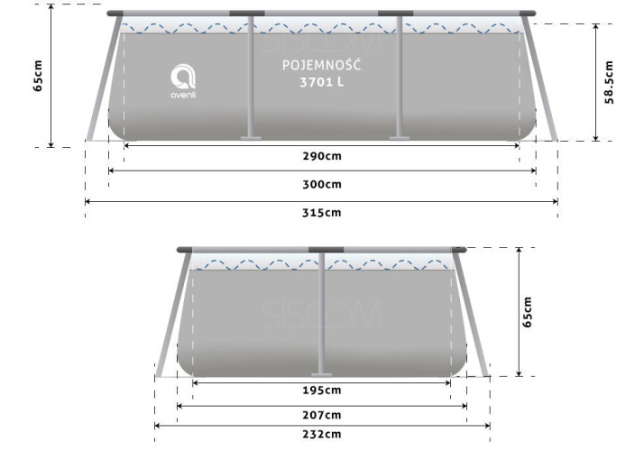 Каркасний басейн Avenli 300x207x65см 15в1 2815 - відчуйте себе наче у відпустці у власному саду або на терасі. Ваші діти забудуть про нудьгу, а ви розслабитеся в освіжаючій воді після напруженого робочого дня. Установка басейну повинна відбуватися на землі, остерігайтеся будь-яких нерівностей, коріння, що стирчить, сміття, які можуть його пошкодити. Крім того, басейн не слід розміщувати на похилій поверхні. Набір підходить для дітей старше 6 років. У басейні можуть перебувати кілька людей.