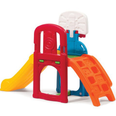 Центр активності STEP2 Activity Park with Climbing, Slide, Football and Basketball 850300 - маленькі спортсмени можуть лазити, ковзати, стрибати та багато іншого завдяки парку активності з гірками від відомого бренду Step2. Виходьте на вулицю та будьте активними! Простора конструкція цього скелелаза дозволяє розважатися різними способами. Закидайте баскетбольний м'яч, що входить до комплекту, і записуйте рахунок за допомогою ручок, розташованих під кошиком. Грайте у футбол, використовуючи простір під платформою, яка також слугує воротами. Маленькі спортсмени також можуть по черзі підніматися на платформу за допомогою драбинки і триматися за ручки, які розташовані по обидва боки, а потім скочуватися вниз з гірки.
