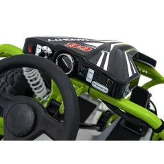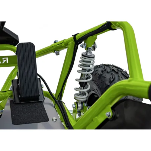 Комфорт їзди забезпечує інноваційна система підвіски, яка чудово амортизує нерівності поверхні. На передній осі встановлено 2 амортизатори, а ззаду знаходиться амортизатор з регулюванням, що дозволяє адаптувати картинг до різних поверхонь.