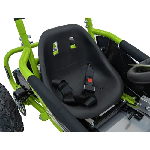 Електричний картинг MAIGHTY був розроблений з урахуванням максимального комфорту використання. Спортивне, водонепроникне сидіння, оснащене 5-ступінчатим регулюванням, дозволяє підібрати положення відповідно до зросту молодого водія. Крім того, ремені безпеки забезпечують повний захист під час динамічної їзди.