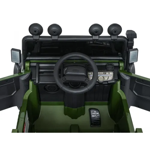 Дитячий електромобіль RAMIZ Land Rover Defender 110 SVX Concept - це елегантний і міцний автомобіль для дітей, який вірно відтворює позашляховий характер оригіналу і привертає увагу реалістичними деталями. Автомобіль оснащений практичними дверцятами, що відкриваються при посадці, та містким багажником ззаду, розмірами приблизно 41 x 6 x 10 см – ідеальним для іграшок або аксесуарів.