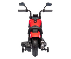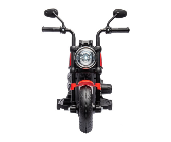 Він виготовлений з матеріалів, що характеризуються високою міцністю і безпекою. Має перемикач руху вперед або назад, додаткові бічні колеса, профільоване сидіння, дзеркала і світлову передню фару. Керування та їзда на мотоциклі сприяють фізичній активності вдома та на свіжому повітрі, вчать основним правилам безпеки та поведінки на дорозі.