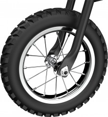 - Надувні колеса з позашляховими шинами, дозволять вам долати не тільки тротуари та велодоріжки, але й гравійні дороги та навіть газони.