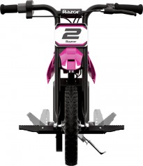 Електробайк Razor Motor MX125 Dirt PINK 15173863 - натхненний мотоциклом Razor USA, мотоцикл для того, щоб діти змалечку відчували себе впевнено за кермом мотоцикла! Великі надувні колеса з кросовим протектором дозволяють їздити по нерівній місцевості. Для неповнолітніх шанувальників кросу! MX125 - електричний міні-мотоцикл, призначений для їзди по бездоріжжю для дітей віком 7+.