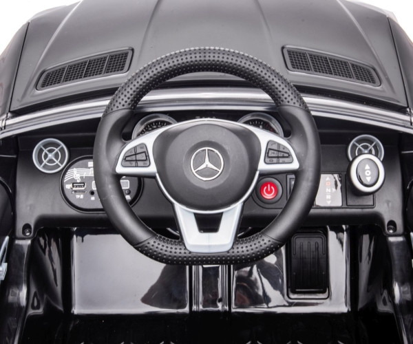 Mercedes можна керувати за допомогою пульта дистанційного керування або дитиною за допомогою керма і педалі газу. Після зняття ноги з педалі газу автомобіль самостійно зупиняється. Пульт дистанційного керування має функції: блокування автомобіля - P, визначення 1 з 3 рівнів швидкості - S, повороту і руху вперед і назад. Щоб з'єднати автомобіль з пультом дистанційного керування, потрібно утримувати кнопку «M» протягом 2-4 секунд.