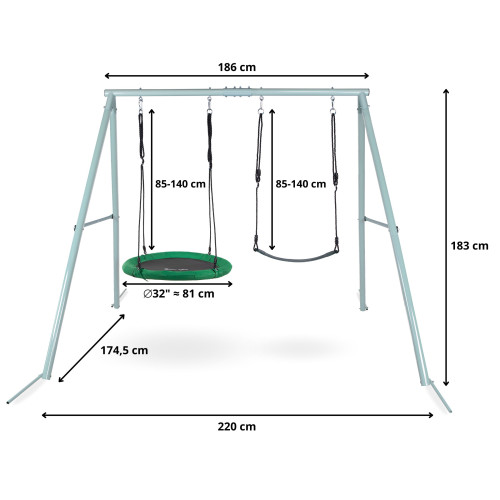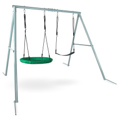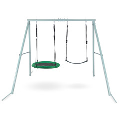 Доступно. Відправка 3-7 робочих днівСадова гойдалка HyperMotion Гніздо лелеки SWING HYP2 - подвійна садова гойдалка з каркасом і мотузками - сидіння і гніздо лелеки. Доповніть дизайн свого саду безпечними та зручними гойдалками, які забезпечать вашим малюкам розвагу та дозволять їм витрачати зайву енергію. Модель з гніздом лелеки і зручним сидінням - ідеальне рішення для 2 або навіть 3 осіб! Сучасний дизайн гойдалок, що привертає увагу, зробить сад ще більш привабливим для дітей. Завдяки можливості встановлення як гнізда лелеки, так і зручного сидіння , діти можуть одночасно гойдатися та брати участь у спільній забаві. Гойдалки мають надзвичайно стійку та міцну конструкцію , тому вам не доведеться турбуватися про безпеку ваших дітей під час гойдання. Якщо ви шукаєте унікальний подарунок для своїх малюків, подвійна гойдалка з сидінням і гніздечком лелеки обов'язково принесе їм багато радості. Це не тільки подарує малечі неймовірні враження. Розмахування також сприяє зміцненню м'язів і поліпшенню координації рухів. Крім того, це дозволяє тренувати почуття рівноваги.