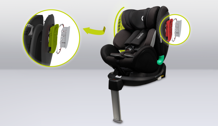 - спинка автокрісла Antoon Plus має 5-ступінчасте регулювання нахилу (4 рівні вперед, 1 рівень обличчям назад)