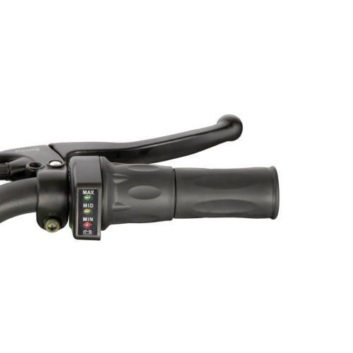 - Літієвий акумулятор 36 В 12 А·год – легкий, міцний і швидкий у заряджанні, забезпечує тривалий час їзди (до 2,5 годин).