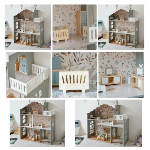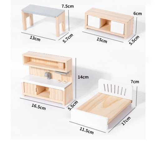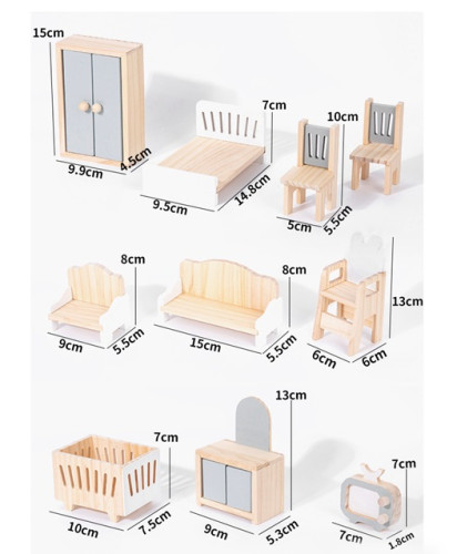 У комплект будиночка входить набір дерев'яних меблів, які можна вільно компонувати: