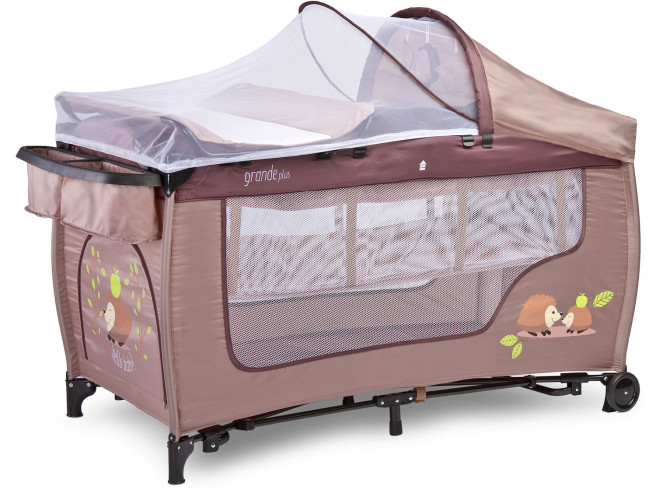 Ліжечко-манеж Caretero Grande Plus - це чудово обладнане дитяче ліжечко для подорожей. Воно поєднує в собі чарівний зовнішній вигляд і функціональність. Завдяки таким функціям, як великий жорсткий пеленальний столик, органайзер і підвісна підлога, догляд за дитиною дуже зручний. Також в люльці є дуга для іграшок та москітна сітка, які допоможуть забезпечити солодкі сни для вашої дитини.