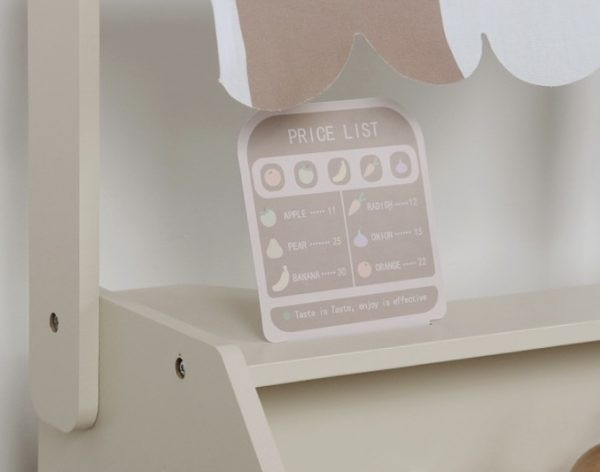 Дерев'яний дитячий магазин NUNUKIDS GSERIN - забезпечить цікаву та корисну розвагу на довгі години. Завдяки доопрацюванню кожного елемента, ваша дитина може маніпулювати іграшкою різними способами. Продукт може стати кіоском на ринку або магазином. Єдине, що обмежує вашу дитину, це її уява! Дерев'яний кіоск оснащений тканинним дахом, прилавком і поличками, розділеними на перегородки, де ваш маленький підприємець може розмістити товари для продажу. Полички мають етикетки, завдяки чому ваша дитина може підписати товари крейдою! Правильний продаж товарів забезпечить список цін та ваги з касою! Весь набір є не тільки чудовою іграшкою, але й естетичною прикрасою дитячої кімнати!