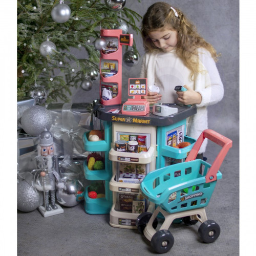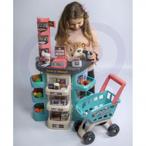 Ігровий магазин Woopie Supermarket 47 акс. 28774 - супермаркет з візком для покупок, що містить 47 аксесуарів від надійного бренду Woopie, є ідеальним варіантом для дітей старше 3 років. Діти люблять наслідувати своїх батьків, тому це чудовий набір для вашої дитини. Рольові ігри надзвичайно розвивають уяву та креативність малюка. Магазинчик містить у комплекті всі необхідні елементи для обладнання робочого місця маленького продавця, включаючи: касу з вагами, сканером і зчитувачем платіжних карток. Доданий візок для покупок дозволяє грати з друзями незалежно від місця і часу, а крім того, дитина завжди буде знати, як поводитися в супермаркеті!
