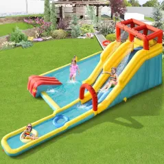 - Різноманітні активності: надувний замок пропонує кілька ігрових зон, таких як невелика гірка, подвійна гірка, басейн, баскетбольне кільце, водяна гармата та стіна для скелелазіння. Нехай вони насолоджуються часом разом з друзями.