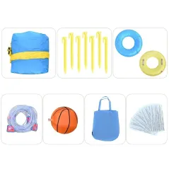 - Легке складання та транспортування: дитячий майданчик оснащений вихідним отвором для легкого надування та здування повітря. Збірка та здування повітря можуть бути виконані за лічені хвилини. Сумку, що входить до комплекту, можна використовувати для перенесення або зберігання, коли вона не використовується.