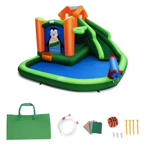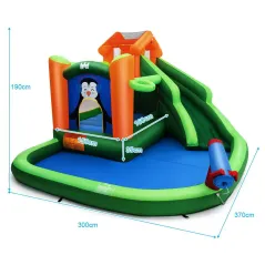 Доступно під замовлення. Очікувана відправка: 11.03.2026Дитячий надувний ігровий комплекс Замок у стилі пінгвінів Costway 370 x 300 x 190 см 6194 - гірка, басейн, водяна гармата, баскетбольне кільце та стіна для скелелазіння чекають на малюків в одному місці. Наш надувний замок виготовлений з високоякісної тканини Оксфорд з посиленими швами, що забезпечує максимальну міцність та довговічність, а також безпеку під час кожної гри. Цей надувний замок може вмістити до трьох дітей одночасно та витримує вагу до 150 кг, що робить його ідеальним центром активності для малюків у будь-який літній день. Швидке встановлення, легке зберігання та зручне транспортування роблять наш надувний замок не лише чудовою розвагою, але й практичним рішенням для вашої родини.