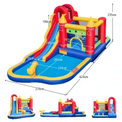 - Збільште веселощі: Цей надувний замок – чудовий ігровий центр для малюків. Басейн, гірка та водяна гармата розважать вашу дитину!