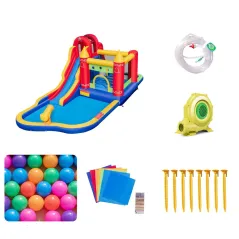 Доступно під замовлення. Очікувана відправка: 11.03.2026Дитячий надувний ігровий комплекс Замок з гіркою Costway 5666 - перетворіть ігровий час вашої дитини на захопливу пригоду з цим надувним батутом! Приготуйтеся до світу веселих та захопливих ігор з великим басейном, високою гіркою та батутами. Виготовлений з високоякісного матеріалу з подвійним швом, безпека дитини є понад усе! Добре продумані деталі, такі як сітка та амортизуюча платформа, забезпечують 100% захист. Вісім ґрунтових анкерів включені для додаткової стійкості. Збірка швидка та проста. Водяний шланг можна підключати або відключати. Повний комплект також включає ремонтний комплект, 50 м'ячів та практичну сумку для перенесення.