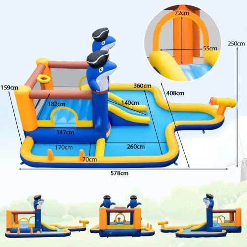 Дитячий надувний ігровий комплекс Замок з гіркою та надувними акулами Costway 5670