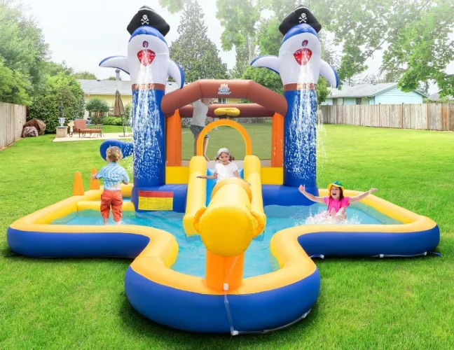 - Парк для кількох дітей: Радість спільного проведення часу з друзями – чудова особливість для дітей. Водна гірка пропонує достатньо місця для кількох дітей, особливо надувні секції, які можуть вмістити двох дітей (3-10 років) одночасно. Однак батьки повинні знати про індивідуальне обмеження ваги (45 кг).