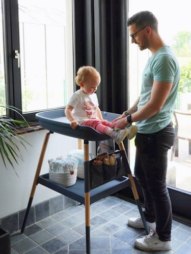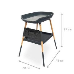 Пеленальний столик Bo Jungle Balneo - ідеальний додаток до спальні кожного немовляти та стильний елемент декору. Він поєднує функціональність із чистим, мінімалістичним скандинавським дизайном. Гарний пеленальник темно-сірого кольору Shady Grey має міцні дерев'яні букові ніжки, які додають теплий, природний акцент до сучасного вигляду столика/стільниці. Пеленальник має стабільну конструкцію: трапецієподібне розташування ніжок і міцний каркас, що забезпечує безпеку використання.