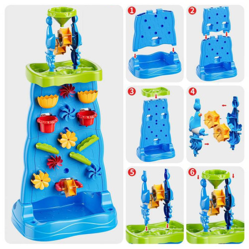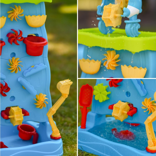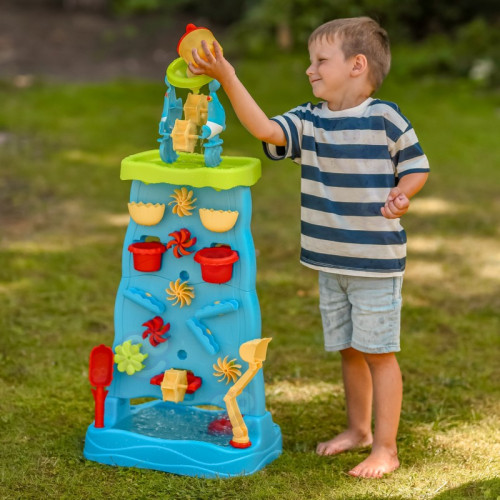Водний столик-стінка 2в1 Woopie XXL 557300 - двостороння водна стінка Woopie - це унікальна іграшка, яка перетворить будь-який сад або пляж на місце, сповнене сміху та творчої гри. Завдяки численним кольоровим аксесуарам, рухомим млинками та контейнерам діти можуть експериментувати з водою та піском, розвиваючи при цьому свої ручні навички та уяву. Проста конструкція та великі розміри роблять іграшку зручною та привабливою навіть для декількох дітей одночасно.