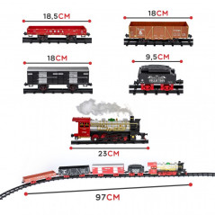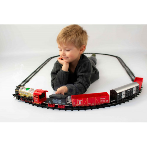 Електрична залізна дорога Woopie 30449 - відправляйся в незабутню подорож на електричній залізниці від бренду Woopie! Це фантастична інтерактивна іграшка, яка порадує кожного маленького любителя поїздів. Локомотив видає реалістичні звуки, має світловий прожектор і, що найцікавіше, виробляє безпечний «дим», тобто водяну пару, створюючи враження справжнього локомотива. Колії легко збираються, а їх овальна форма дозволяє їхати безперервно, без необхідності постійного нагляду за іграшкою. Поїзд рухається самостійно, даючи дитині можливість милуватися спецефектами, що, безсумнівно, принесе багато радості та задоволення!