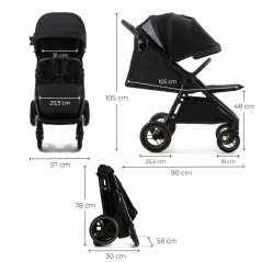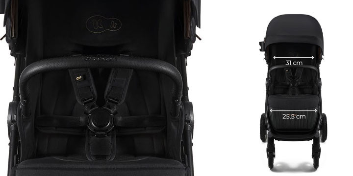 - завдяки 95 см загального простору від підніжки до спинки, що забезпечує достатньо місця для вільного пересування дитини, ваш малюк може відчувати себе комфортно і безпечно під час прогулянок та екскурсій