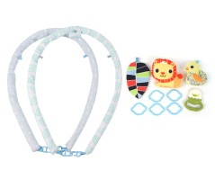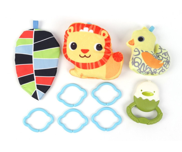Іграшки можна переставляти за бажанням або використовувати окремо. Кожна з них має сенсорні елементи: звуки, різні текстури, безпечні кольори та рухомі частини.