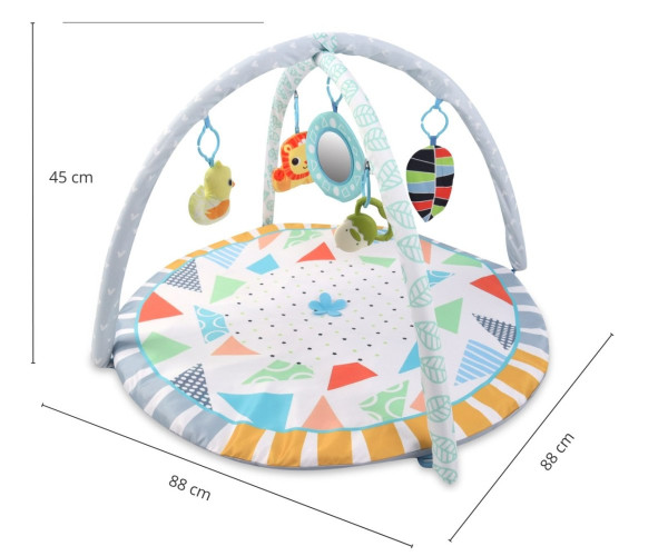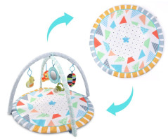 - Сенсорний килимок - місце для відпочинку та вправ. М'яка поверхня з виразною графікою геометричних фігур і контрастна рамка стимулюють зір і заохочують досліджувати навколишній світ.