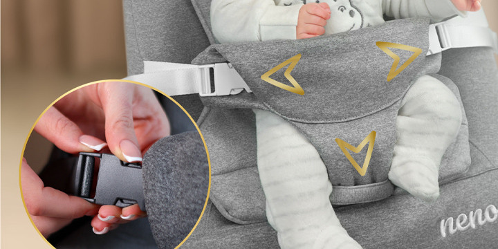 - Навіть найактивніший малюк буде в безпеці в сидінні шезлонга – 3-точковий ремінь безпеки дозволяє йому вільно гратися, зберігаючи максимальну безпеку.