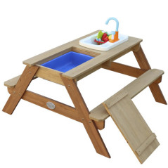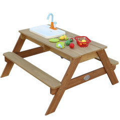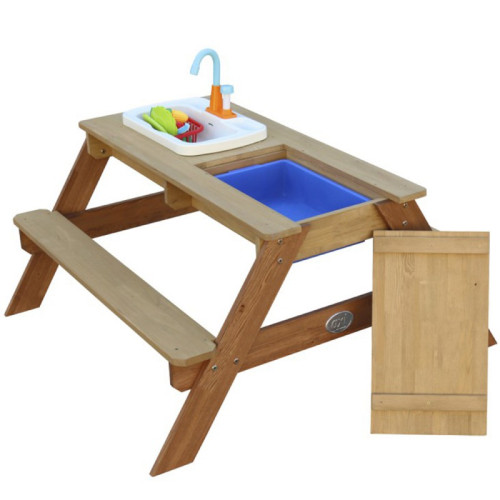Стіл для пікніка з контейнерами для піску/води AXI Emily A031.030.00 - відкрийте для себе унікальний стіл для пікніка 3-в-1, який поєднує в собі функції води, піску та приготування їжі! Модель Emily від AXI - ідеальне рішення для саду, що стимулює дитячу творчість і забезпечує години чудових розваг на свіжому повітрі!