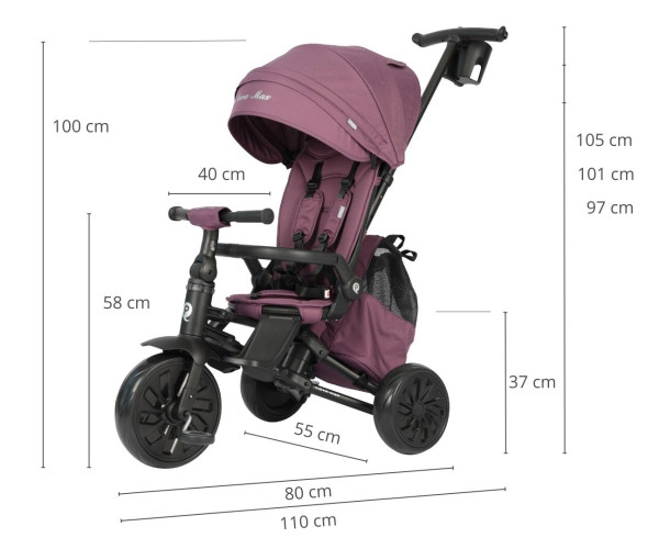 Дитячий триколісний велосипед Qplay Nova Max - це сучасний багатофункціональний триколісний велосипед, розроблений з урахуванням зручності дитини та комфорту батьків. Завдяки продуманим рішенням він росте разом з малюком і пристосовується до його потреб на різних етапах розвитку – від прогулянок до самостійної їзди.
