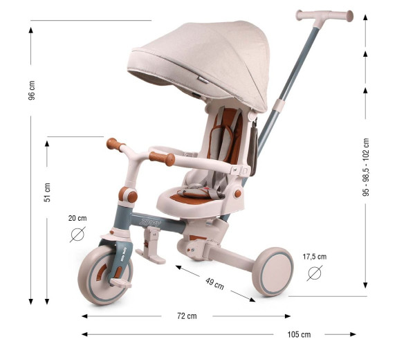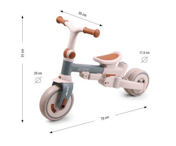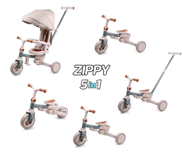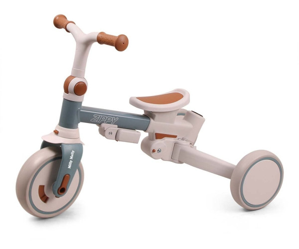 Доступно. Відправка 3-7 робочих днівТриколісний велосипед Milly Mally Zippy - триколісний велосипед ZIPPY був створений з думкою про комфорт і безпеку малюків та зручність батьків. Zippy є стабільним і безпечним, має сучасну конструкцію, зручне профільоване сидіння, що повертається на 180 градусів, що дозволяє їхати обличчям або спиною до напрямку руху. Велосипед оснащений огорожею, що захищає дитину від випадання, триточковими регульованими ременями безпеки та підніжкою. Після демонтажу ручки, огорожі та кабінки Zippy буде служити як триколісний велосипед, а потім, коли дитина вже освоїть основи їзди, після з'єднання задніх коліс як класичний біговий велосипед. Завдяки функції «вільного колеса» дитина може вільно крутити педалі, а батьки можуть продовжувати коригувати швидкість руху.