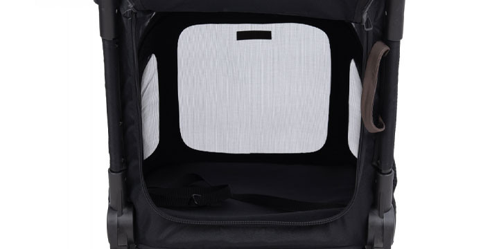 Великий панель ззаду — це ніщо інше, як вхід, через який ваша тварина може самостійно зайти в візок. Всередині є спеціальний ремінець для кріплення нашийника.