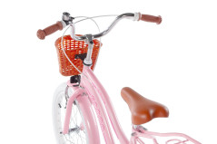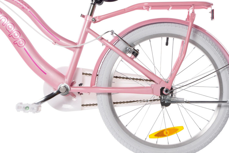 Дитячий велосипед Snapp Bike Vintage 20" SNA000002 - ретро у вінтажному стилі для дівчаток 7+ років (120-135 см). Ідеальний вибір для маленьких велосипедисток - зручний, безпечний і чарівний. SNAPP BIKE вражає класичним вінтажним виглядом, а також дбає про комфорт і безпеку дитини. Пудровий перламутровий колір, хромовані деталі та коричневі ретро-оздоблення надають йому неповторного характеру. Міцна сталева рама і гальма V-brake забезпечують ефективне гальмування, а повний кожух ланцюга захищає одяг дитини від забруднення. Світловідбивачі на велосипеді підвищують видимість. Ергономічне сідло, профільоване кермо з антиковзними ручками та бічні колеса полегшують навчання їзді. Ретро кошик і багажник дозволяють взяти з собою улюблені речі на прогулянку.