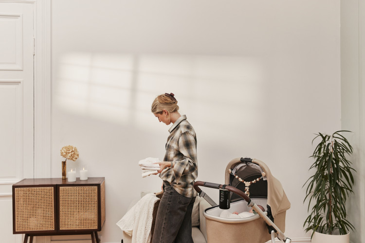 Мощный бесщеточный двигатель: регулируемая интенсивность. Качает даже коляски для двойни.