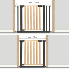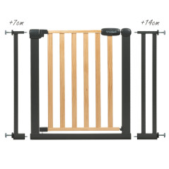 Ширина ворот регулируется с помощью четырех винтов с резиновыми накладками, что позволяет адаптировать их к разным местам в вашем доме. Комплект также включает два удлинителя: 7 см и 14 см, что позволяет адаптировать ворота к разной ширине дверной рамы и лестницы.