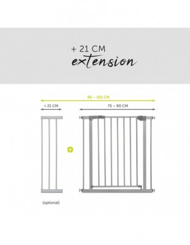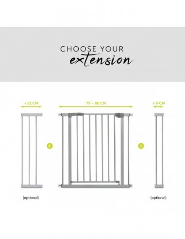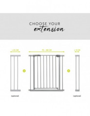 Защитное дверное заграждение Hauck Stop N Safe 2 – можно использовать для дверей и лестниц шириной от 75 до 80 см. Если вы хотите защитить больший проход, мы рекомендуем Stop N Safe 2 вместе с надставкой 9 см (84 – 89 см) или Stop N Safe 2 с надставкой 21 см (96 – 101 см). Все модели этого шлагбаума можно удлинить второй надставкой до 122 см и элементом Y-образного шпинделя для круглых лестничных ограждений. Металлические защитные ворота устанавливаются с помощью четырех крепежных винтов путем вдавления между стенами, дверями или лестницами и не оставляют следов при демонтаже, поскольку не требуют сверления. Взрослые могут открыть дверь шириной 50 см одной рукой в обоих направлениях. Это оставляет вторую руку свободной для маленького исследователя. Двойной механизм ручной блокировки дверцы не позволит маленьким детям открыть дверцу. С помощью удлинителя на 9 см и/или 21 см, который можно приобрести отдельно, поручни Stop N Safe 2 можно продлить до 122 см. Если лестничные перила круглые, мы рекомендуем использовать в качестве аксессуаров элементы Y-Spindle.Они заменяют крепежные винты сбоку защитного ограждения, которые должны быть прикреплены к круглым перилам. Возможны следующие варианты ширины: 75 - 80 см = защитная калитка (без надставок) 84 - 89 см = защитная калитка + надставка 9 см (опция) 93 - 98 см = защитная калитка + 9 см + надставка 9 см (опция) 96 - 102 см 1 0 см = защитная калитка + 9 см + надставка 21 см (опция) 117-122 см = защитная калитка + 21 см + надставка 21 см (опция)