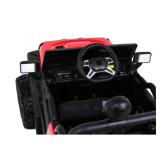 Детский электромобиль RAMIZ Master Of Terain – это практичный, компактный и безопасный детский автомобиль на батарейках. Он идеально подойдет для начала приключений на собственном внедорожнике. Машина отлично подходит для езды по неровной местности, поскольку имеет большие колеса на подшипниках, изготовленные из мягкой пены EVA. Каждое колесо оснащено амортизатором, оказывающим значительное влияние на качество и комфорт езды. Транспортное средство изготовлено из прочного, первоклассного пластика и оснащено светодиодными фонарями спереди и сзади, а также коробкой передач с подсветкой. Транспортное средство работает от двух мощных 35-ваттных двигателей и имеет аккумулятор 12В/10Ач. Модель подходит для детей от трех лет и отвечает всем требованиям безопасности. Автомобиль оборудован ремнями безопасности, имеет замок на боковой двери и пульт дистанционного управления, благодаря чему родители будут иметь полный контроль над транспортным средством. С помощью пульта дистанционного управления можно управлять автомобилем вперед, назад, поворачивать, корректировать управление ребенком и немедленно останавливаться, если это необходимо. Преимуществом автомобиля является медленный старт, автомобиль стартует очень медленно, чтобы ваш ребенок не испугался при старте. Игрушечный автомобиль прослужит вашему ребенку до достижения им веса 28 кг или пока он не станет достаточно взрослым, чтобы пересесть на большую модель.