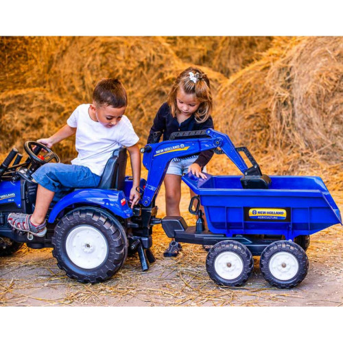 Трактор на педали с прицепом FALK New Holland 3090W – это мечта многих маленьких трактористов. Тщательно изготовленный, с вниманием к мельчайшим деталям!!! Ни один фермер не пренебрег таким трактором. Транспортное средство на педалях – идеальный подарок для каждого ребенка. Новейший трактор New Holland на педалях для детей с ковшом, погрузчиком и прицепом изготовлен из высококачественного пластика. Он также имеет вращающееся сиденье. Транспортное средство предназначено для детей в возрасте от 3 лет. Каждый молодой тракторист полюбит эту модель, транспортное средство, изготовленное в оригинальной цветовой гамме компании New Holland.