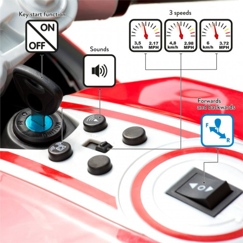Электробайк Feber Ducati 12V FEN09000 – откройте для себя мир, полный восторга, с FEBER MOTO DUCATI 12V – мотоциклом, который отправит вашего ребенка в удивительное путешествие, полное азарта и веселья! С аккумулятором 12 В и скоростью от 3,5 до 6 км/ч этот мотоцикл обеспечивает как мягкое ускорение, так и динамическое движение вперед и назад. Оснащенный ключом, тремя передачами и прогрессивным ускорением, он гарантирует безопасные развлечения. Дополнительное освещение спереди и приборной панели, а также клаксон придают реалистичности забаве. Позвольте своему ребенку почувствовать ветер в волосах с FEBER MOTO DUCATI 12V – мотоциклом, который разожжет воображение и страсть к езде!