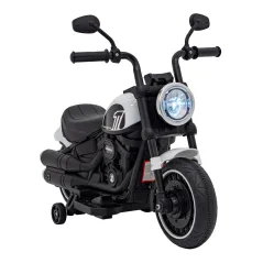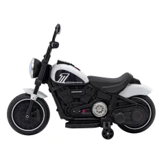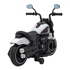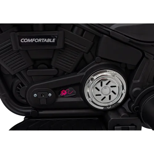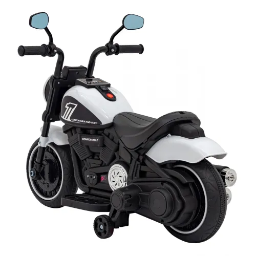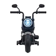Электробайк RAMIZ Chopper FASTER – привод детского мотоцикла полностью электрический. В его основе лежит двигатель мощностью 20 Вт. Он питается от аккумулятора 6V/4.5Ah. Это обеспечит плавную и длительную езду, но следует позаботиться о регулярной зарядке аккумулятора до полного заряда. К детскому электромобилю приложены интерактивные элементы, такие как реалистичные светодиодные фары. Также интересна аудиопанель с самыми необходимыми выходами MP3, USB, AUX, SD и Bluetooth для воспроизведения любимых песен. Маленьким гонщикам также понравятся загружаемые мелодии и FM-радио, установленное в мотоцикле.
