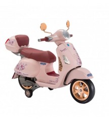 Peg-perego VESPA MON AMOUR - если ребёнок не умеет держаться на двух колёсах, в комплекте предусмотрена система дополнительных стабилизирующих колёс. Такая модель понравится, как мальчикам, так и девочкам. Мотороллер способен разогнаться до 4,9 км/час и имеет простое управление. Vespa способна выдержать мотоциклиста весом до 30 кг. Под сиденьем спрятан вместительный багажник, куда поместятся личные вещи ребёнка. Система торможения синхронизирована с педалью газа, что исключает возможность столкновения на скорости.