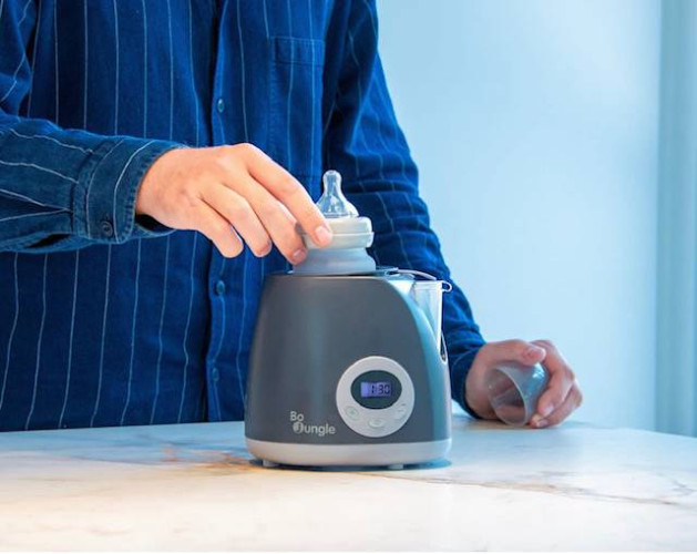 Подогреватель для бутылочек Bo Jungle Digital Car&Home s.grey - цифровой бутылочный подогреватель работает очень быстро и подходит для использования дома и в автомобиле для подогрева как детских бутылок, так и банок с едой. Форма и элегантный цвет графита сочетают в себе дизайн и эффективность. Он имеет большой диаметр 8,5 см и мерную ложку воды, а также комплектуется переходником для маленьких бутылок. Только 1 минута 30 секунд достаточно, чтобы подогреть бутылку объемом 240 мл, а время нагрева настраивается за 10 секунд, электронный дисплей показывает оставшееся время до окончания нагрева. Подогреватель имеет автоматическое отключение, визуальный и звуковой сигнал. Адаптер для розетки в автомобиле позволяет подогреть молоко или еду во время поездки за 4 минуты.