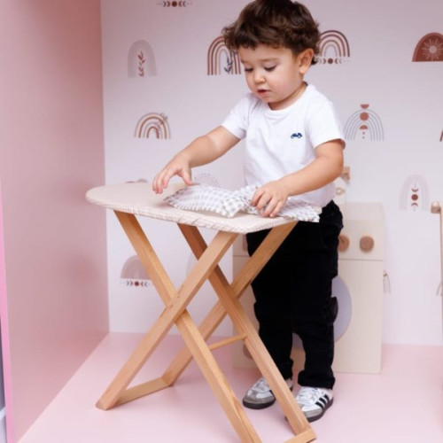 Детская деревянная гладильная доска с утюгом NUNUKIDS – это идеальный продукт для детей, которые любят имитировать действия взрослых! Уборка, пылесос и утюжка – это самые интересные занятия для малышей. Благодаря нашей деревянной гладильной доске ваш ребенок научится эффективно гладить, складывать одежду и соблюдать правила безопасности во время глажки. Нейтральные цвета и форма делают наш продукт не только практичной игрушкой, но и стильным украшением детской!